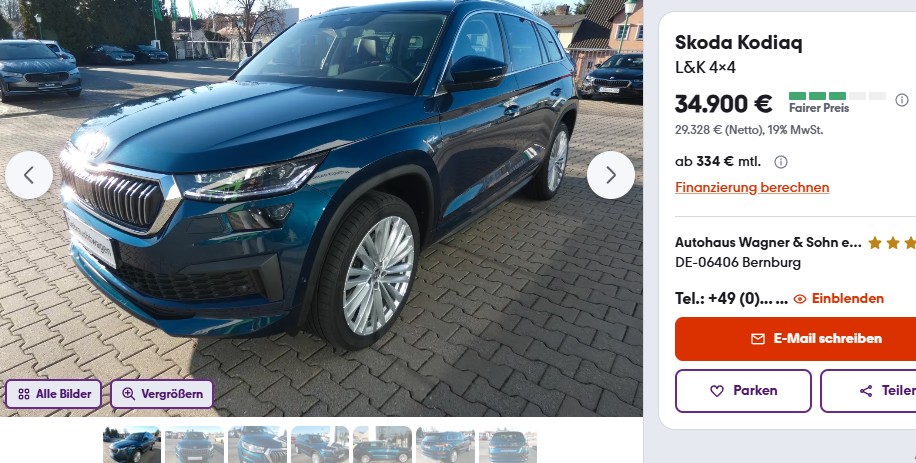 Es öffnet sich unsere Händlerseite bei mobile.de.