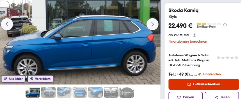 Es öffnet sich unsere Händlerseite bei mobile.de.